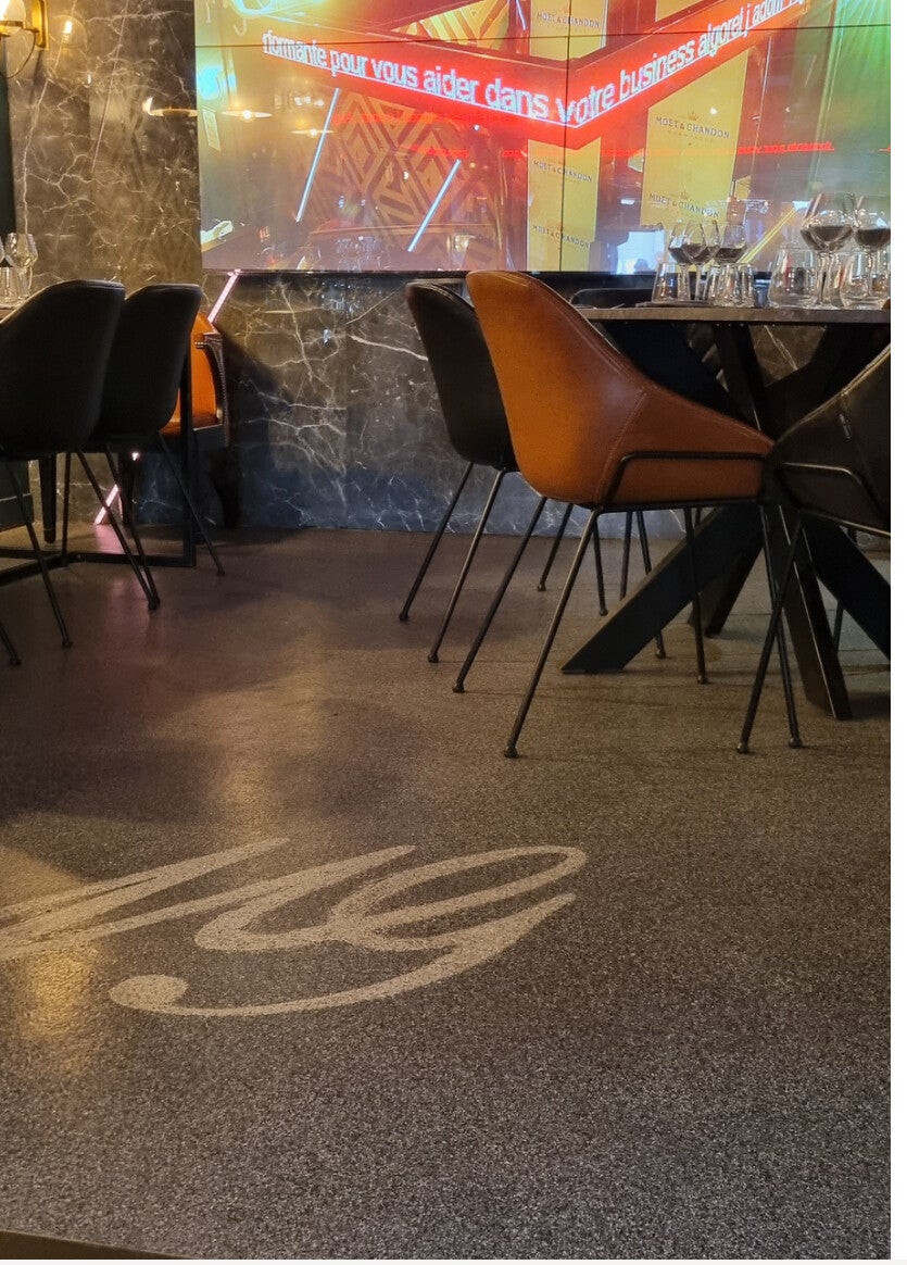 Transformez votre garage en un espace propre et premium. Notre résine pailletée est idéale pour créer un showroom automobile, facile à nettoyer et mettant en valeur votre véhicule.